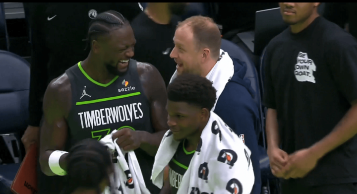赛后,在场边的朱利叶斯-兰德尔对迪温琴佐打趣说道: