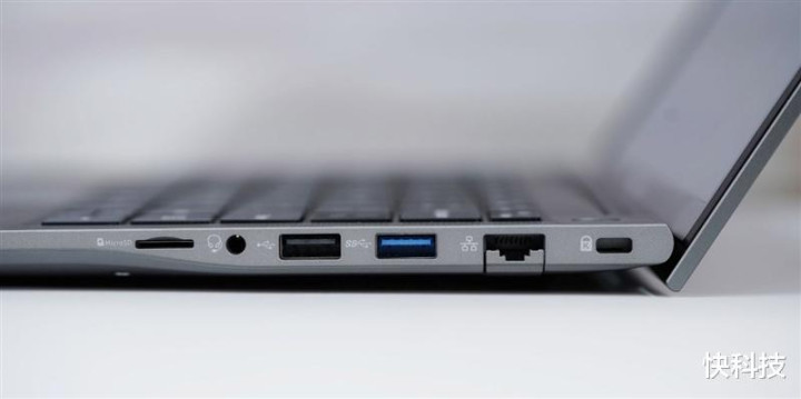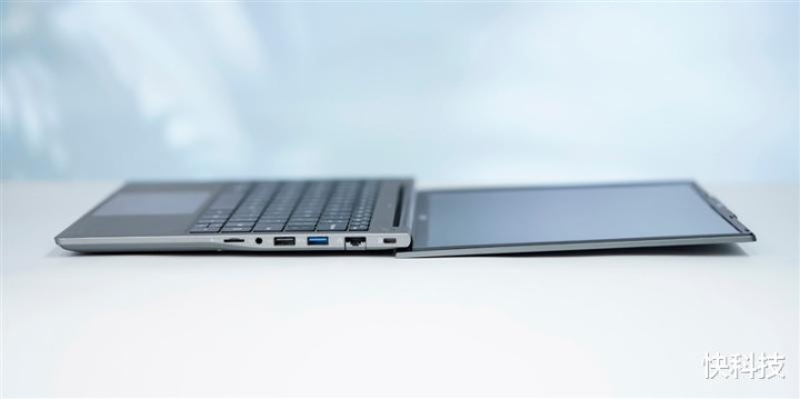 奥睿科Obook超能本的接口极为丰富,远超这个级别轻薄本的水平,不但数量众多而且种类也很齐全,不但提供了一个折叠的千兆网口,甚至三个USB-A接口中还有一个USB 2.0接口,专门用来连接键盘鼠标使用,感觉像是奥睿科把自家的雷电扩展坞直接做进了笔记本里面一样。