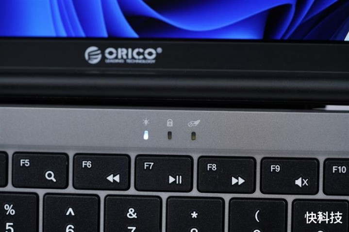 电源指示灯、大小写锁定指示灯和触控板锁定指示灯布置在键盘上方中间位置。