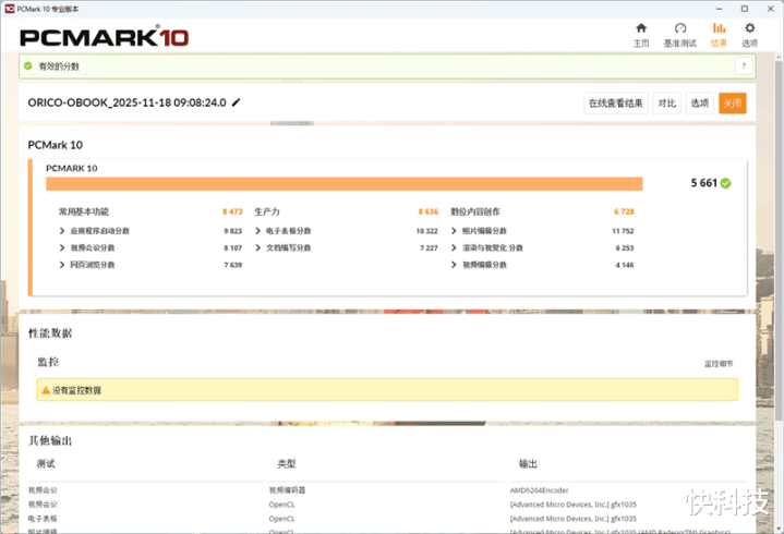 在PCMark10现代办公基准测试中,奥睿科Obook超能本的得分为5661。