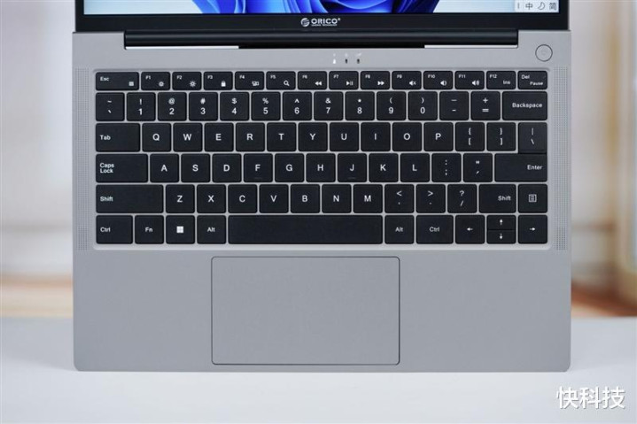 奥睿科Obook超能本的C面,14寸的机身上配置了一套紧凑型键盘,全尺寸键帽宽大舒适。