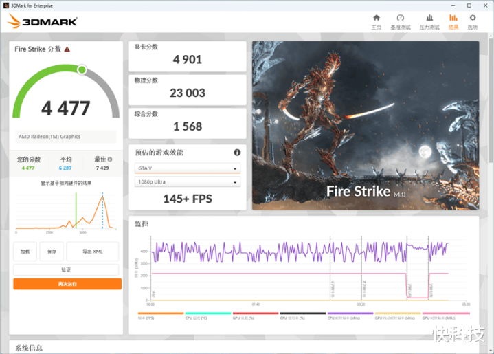 在3Dmark的Fire Strike测试中,奥睿科Obook超能本搭载的AMD Radeon 680M核显成绩为4901分。
