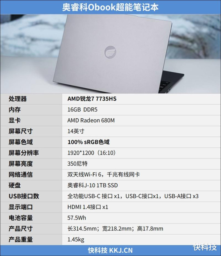 奥睿科Obook超能本是奥睿科进入笔记本领域的第一款产品,定位于入门,搭载的AMD锐龙7 7735HS处理器和16GB内存让它的性价比很高,正常的办公以及一些简单的游戏也毫无压力。