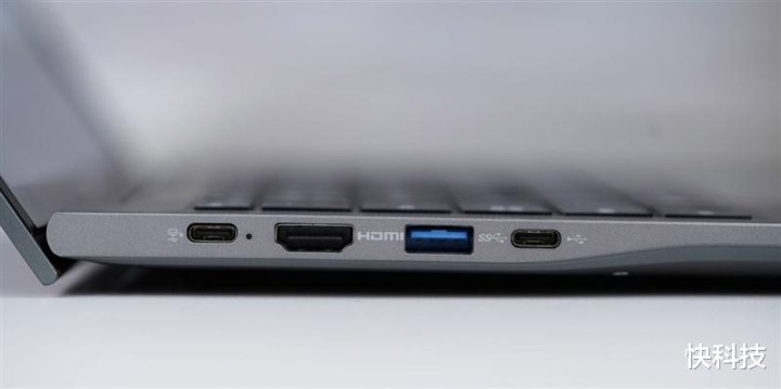 奥睿科Obook超能本机身左侧提供了一个支持PD充电的全功能USB-C接口,一个HDMI接口,一个蓝色全尺寸USB 3.0接口和一个5Gbps的USB-C接口。